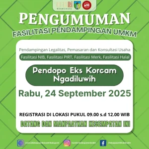 Pelayanan pendampingan legalitas, pemasaran, dan konsultasi usaha ada di Pendopo Eks Korcam Ngadiluwih..